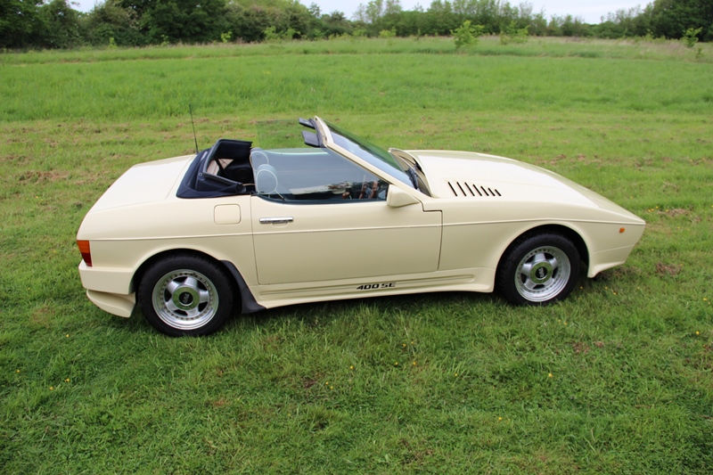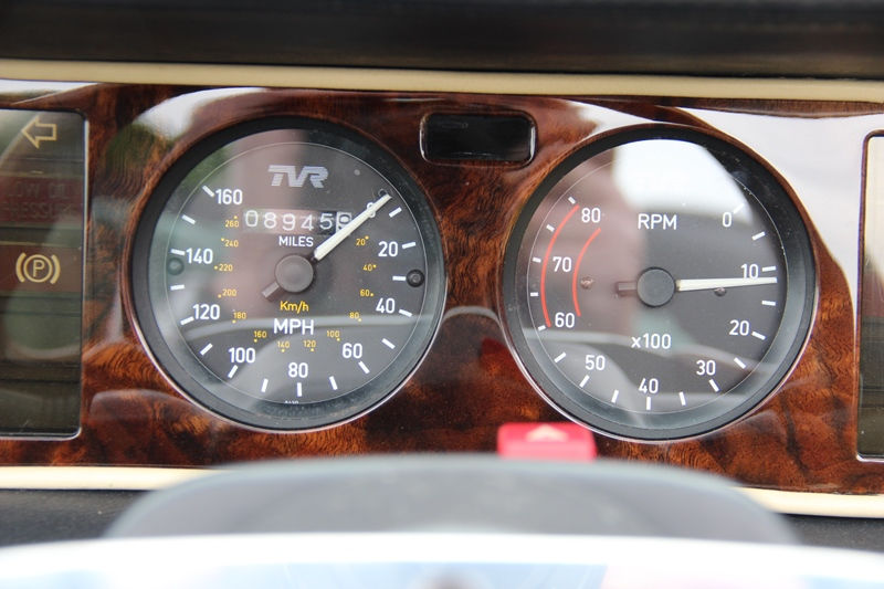 This very low mileage (8900 miles) TVR 400 SE is finished in all original Rolls Royce ivory paintwork with dark blue leather upholstery piped in cream with matching carpets.